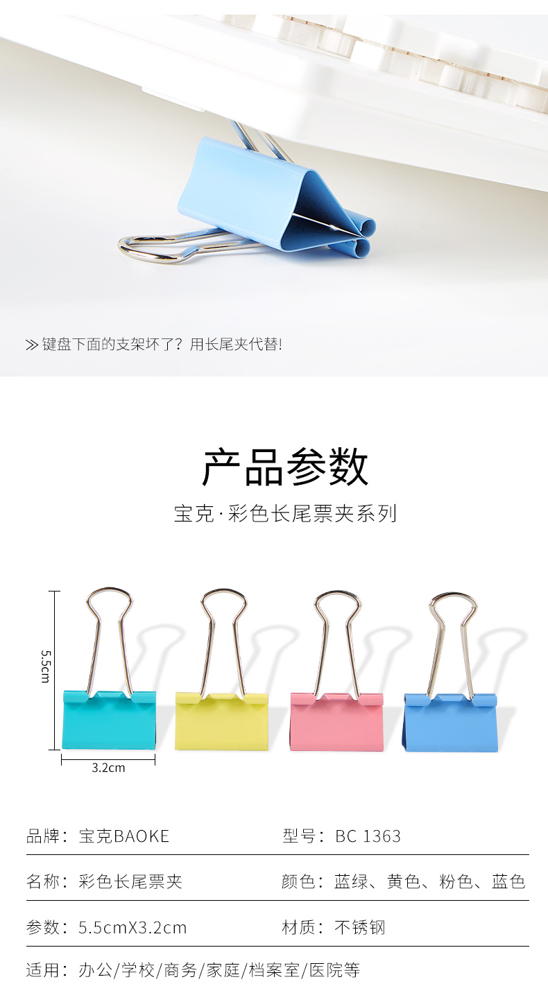 BC1365彩色长尾票夹(19mm)