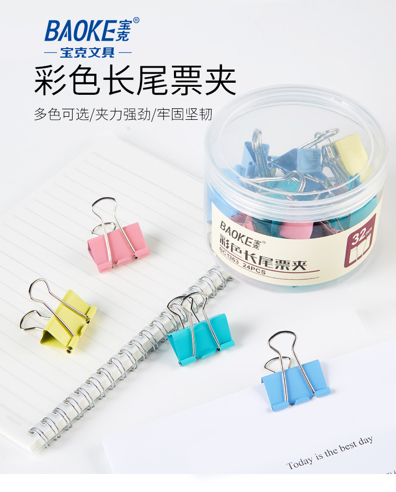 BC1384彩色长尾票夹(25mm)