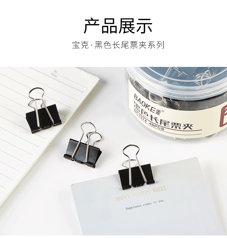 【新】BC1376黑色长尾票夹(15mm)