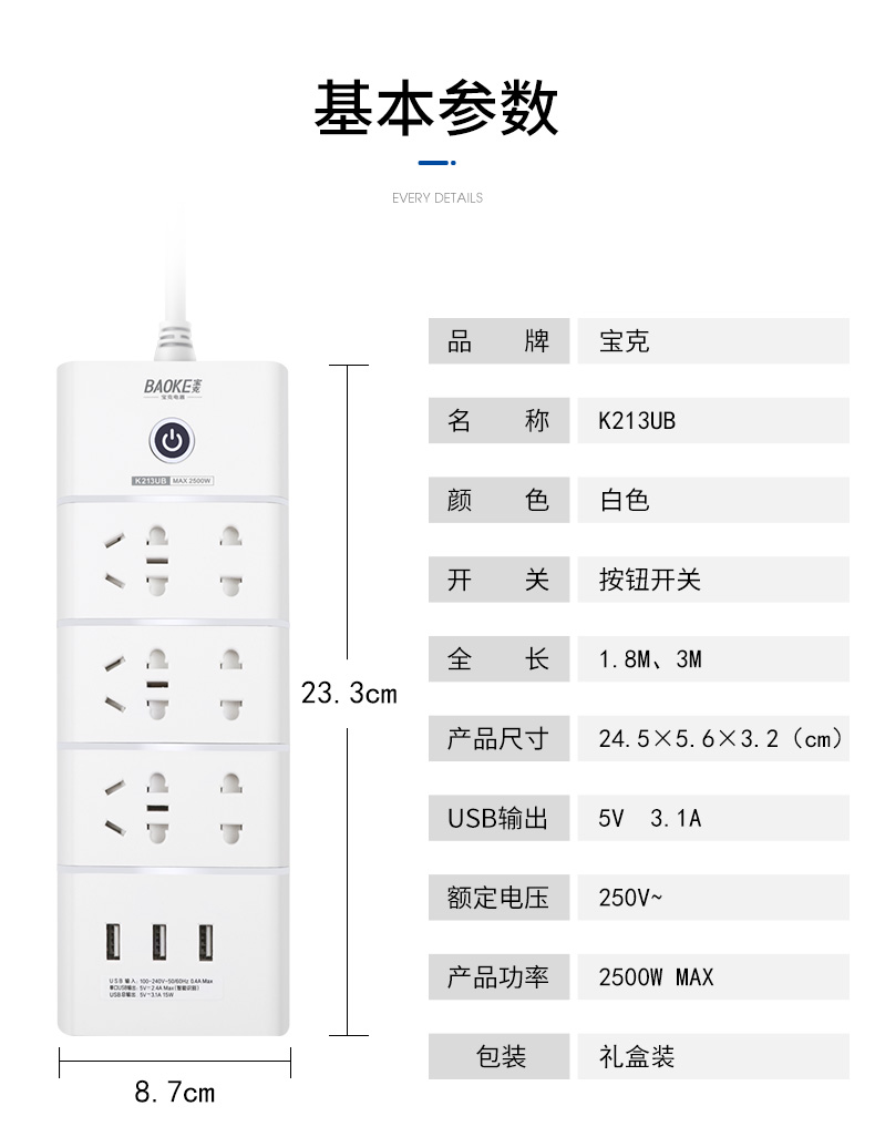 K213-3延长线插座